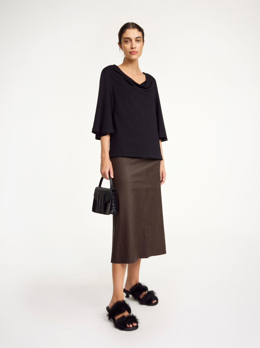 Soft to the touch and falling in a smooth drape, the Bryar top is a wardrobe staple you will wear for seasons to come. Crafted in organic cotton, it features a broad boat neckline and wide sleeves. Its styling options are endless.