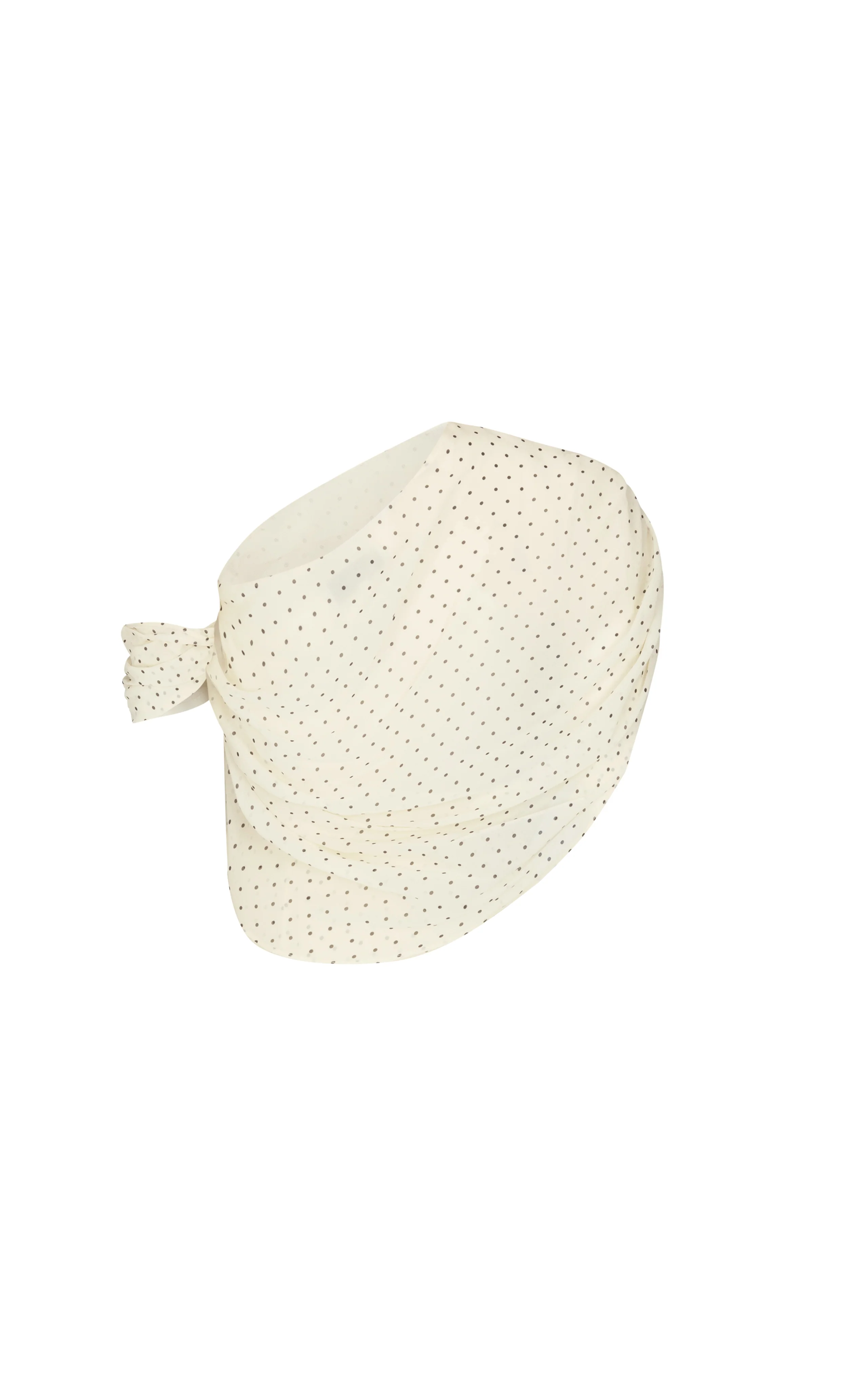 Crafted in black and white polka dot chiffon with a gathered, asymmetrical silhouette/ Features a single shoulder design with soft draping across the body. Lined in mesh.
